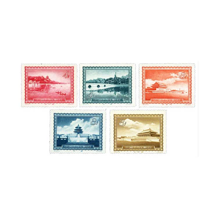 邮电部为了介绍首都北京悠久的历史和灿烂的文化,1956年6月15日发行了这套邮票。1套5枚。 其中第三版因重新印刷,于1957年2月20日发行。