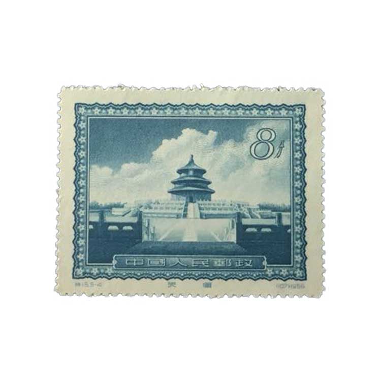 1956年6月15日,为了介绍首都北京悠久的历史和灿烂的文化,中华人民共和国邮电部发行一套《首都名胜》特种邮票,全套5枚。邵柏林设计。其中(106)于1957年2月20日发行。雕刻版。宋广增、吴彭越、林文艺、孔绍惠、高振字、李曼曾雕刻。齿孔14度。无背胶。邮局全张枚数70(7×10)。北京人民印刷厂营业分厂印制。