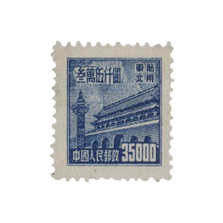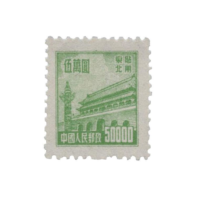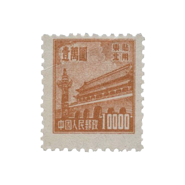 邮电部东北邮电管理总局1950年1月25日发行(其中粉红色1000圆面值邮票发行时间为1950年8月1日),1套10枚。