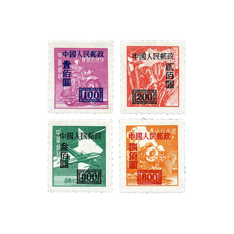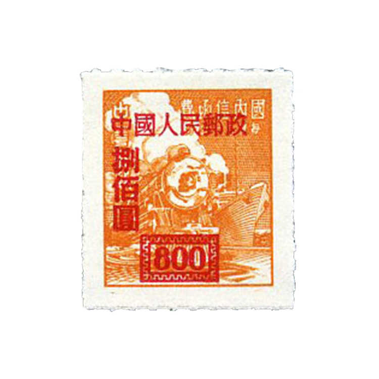 原票中第3枚为大东书局上海印刷厂印刷,其余为香港亚洲石印局印制。第一枚有连“民”字。1950年8月30日为通令公布日期,800圆面值邮票已于1950年6月下旬在京津地区发售使用。全套邮票在1952年4月22日停售,1952年5月15日停用,可在1952年5月15日到6月30日调换。(在新疆是1952年10月1日停用,1952年10月1日到12月31日调换。)