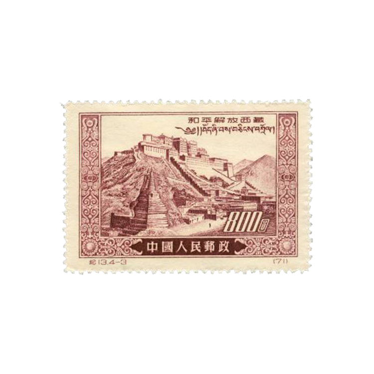 1951年4月22日,以阿沛·阿旺晋美为首席代表的西藏地方当局谈判代表团一行15人到达北京。从4月29日起,中央人民政府全权代表李维汉与西藏地方政府全权代表阿沛·阿旺晋美开始谈判,双方签订了《中央人民政府和西藏地方政府关于和平解放西藏办法的协议》。5月23日,朱德、李济深副主席和陈云副总理主持了签字仪式,西藏宣布和平解放。为纪念和平解放西藏,邮电部于1952年3月15日发行了这套邮票,1955年1月10日再版。