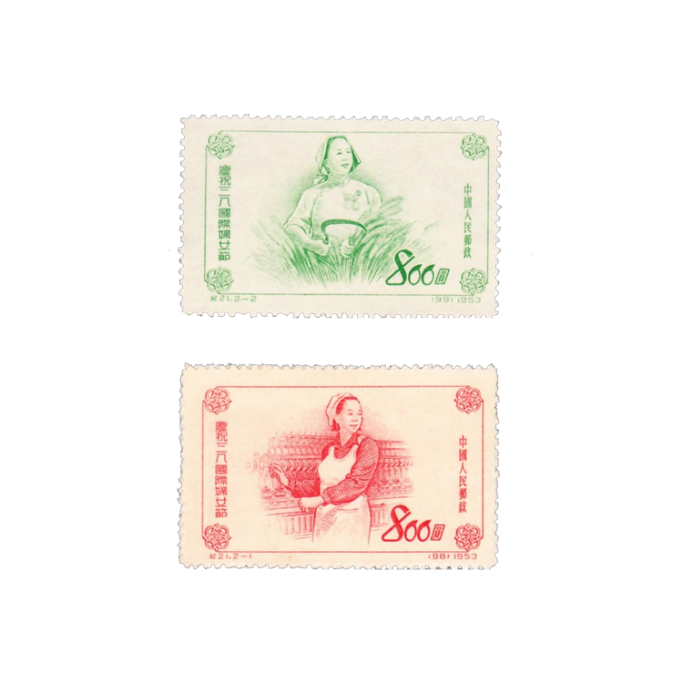 1953年3月8日,中国邮政为了纪念“三八”妇女节特发行此邮票,1套2枚。