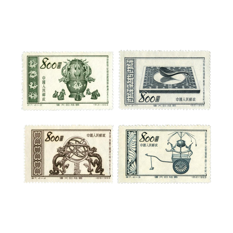 1953年12月1日,为了宣传伟大祖国光辉灿烂的历史文化,邮电部发行了《伟大的祖国(第四组)古代发明》特种邮票,全套4枚。
