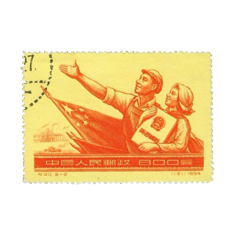 1954年12月30日发行《中华人民共和国宪法》纪念邮票,1套2枚。