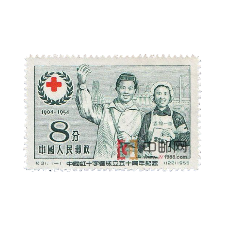 1955年6月25日 发行,为庆祝中国红十字会成立50周年,1套1枚。