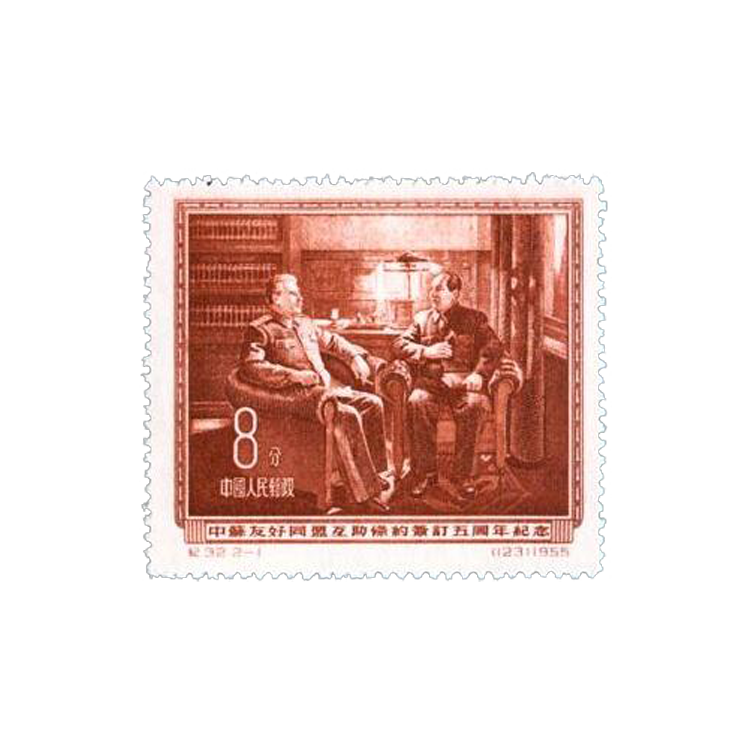 邮电部为了纪念中苏友好关系,1955年7月25日发行《中苏友好同盟互助条约签订五周年纪念》邮票,1套2枚