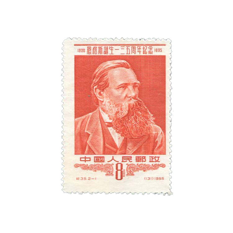 邮电部为纪念无产阶级革命导师恩格斯诞生135周年,1955年12月15日发行了这套纪念邮票。1套2枚