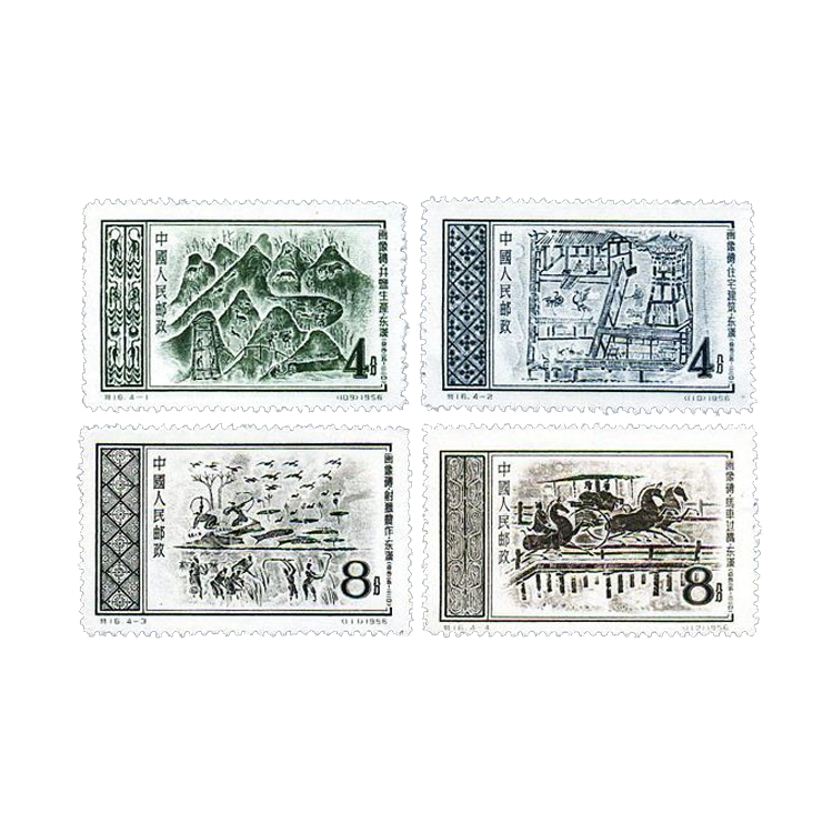 邮电部为了反映我国汉代丰富多彩的砖刻艺术,1956年10月1日发行了这套邮票。1套4枚 。