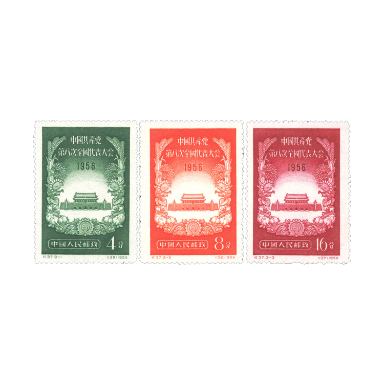 邮电部为庆祝中国共产党第八次全国代表大会胜利召开,1956年11月10日发行了这套邮票,1套3枚。