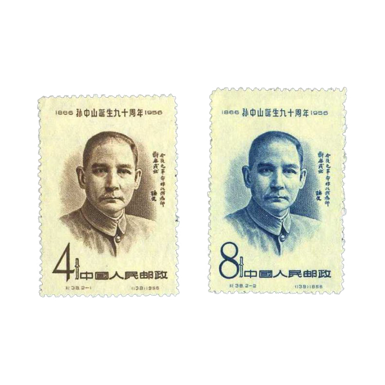 邮电部为纪念孙中山这位中国资产阶级民主革命的先行者、中华民国的创始人,1956年11月12日发行了这套邮票,1套2枚。