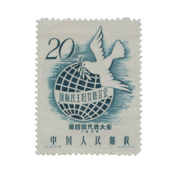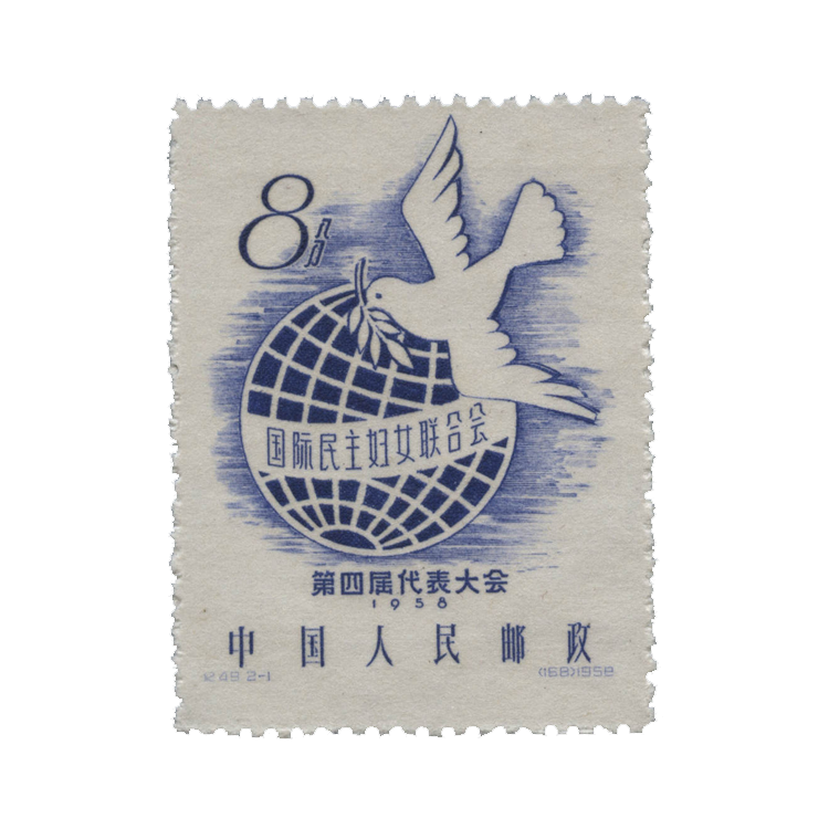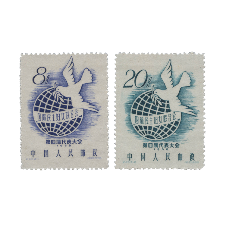1958年6月1日,为纪念国际民主妇女联合会,邮电部发行了《国际民主妇 女联合会第四节代表大会》纪念邮票,1套2枚。
