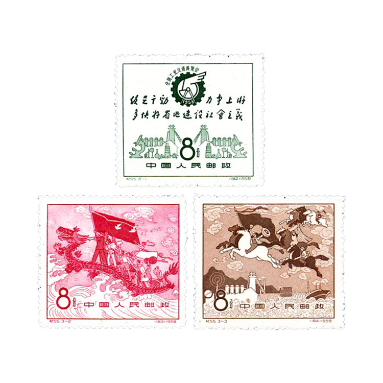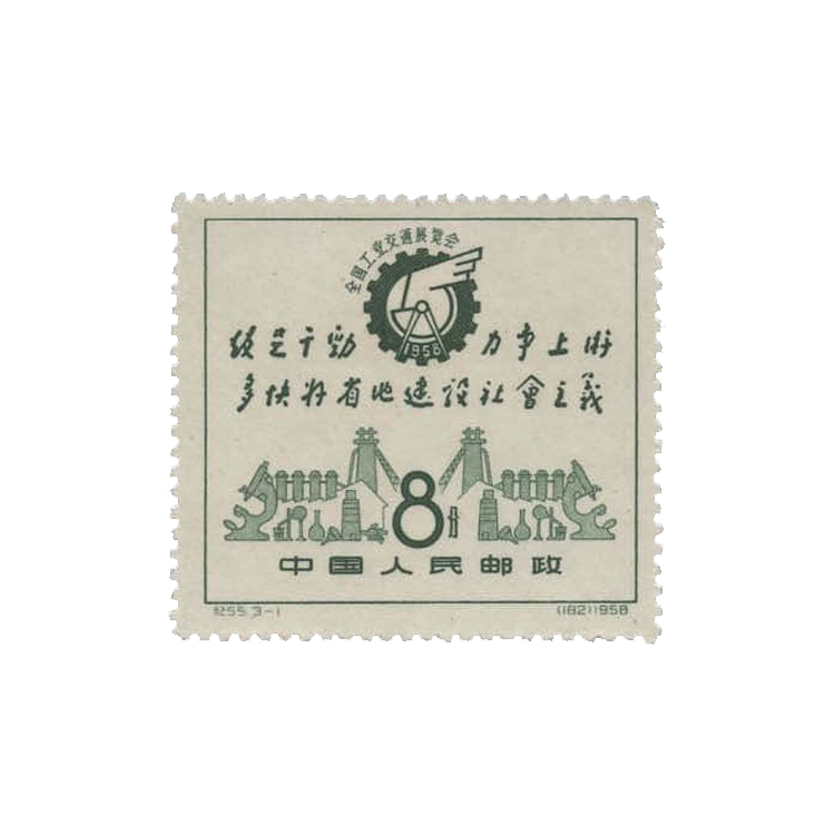 1958年10月1日,为祝贺首次“全国工业交通展览会”的举办, 邮电部发行了《全国工业交通展览会》纪念邮票,1套3枚。