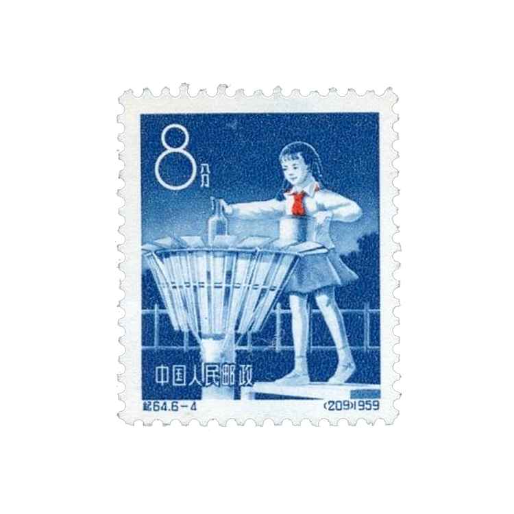 1959年11月10日,为纪念中国少年先锋队建队十周年,邮电部发行了《中国少年先锋队建队十周年》纪念邮票,1套6枚。