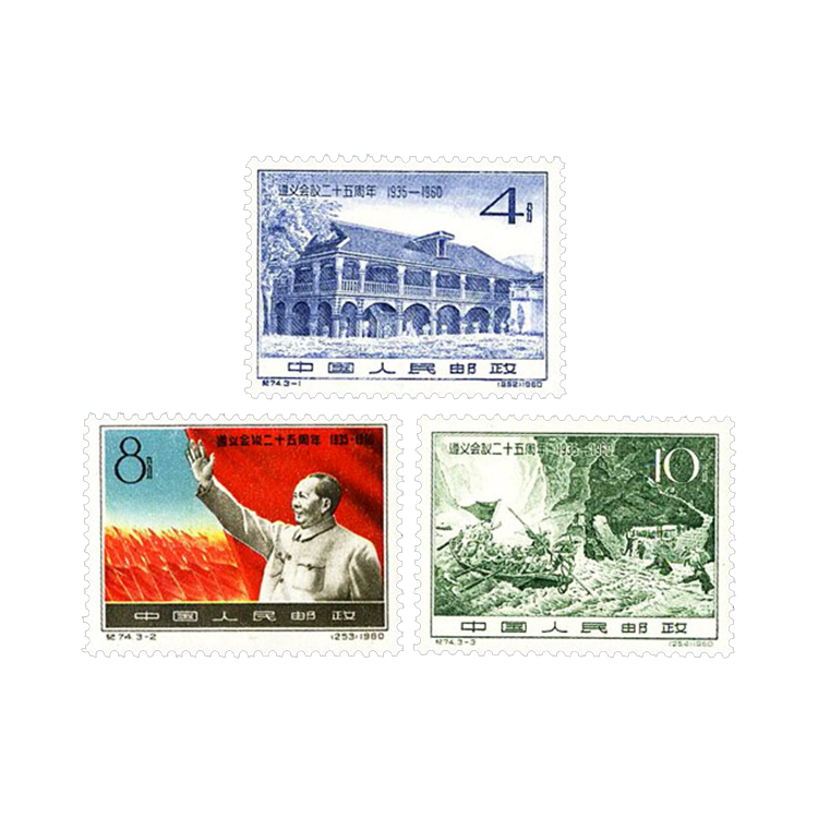 1960年1月25日,在遵义会议25周年之际,邮电部发行了《遵义会议二十五周年》纪念邮票,1套3枚。