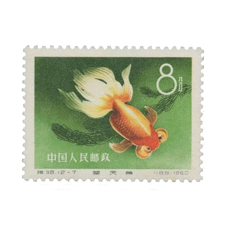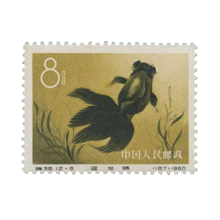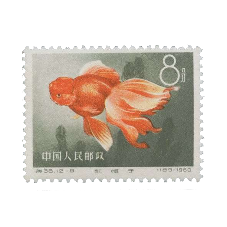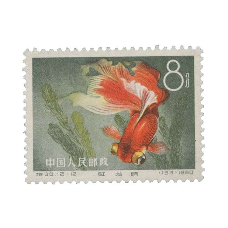 为了弘扬中国的传统鱼文化,邮电部门于1960年6月1日发行《金鱼》特种邮票全套12枚,也是世界上第二个发行金鱼邮票的国家。《金鱼》邮票表现了翻鳃绒球、黑背龙睛、水泡眼、红虎头、珍珠鱼、蓝龙睛、望天鱼、红帽子、紫帽子、红头、花龙睛、红龙睛 12种中国名贵的金鱼品种。