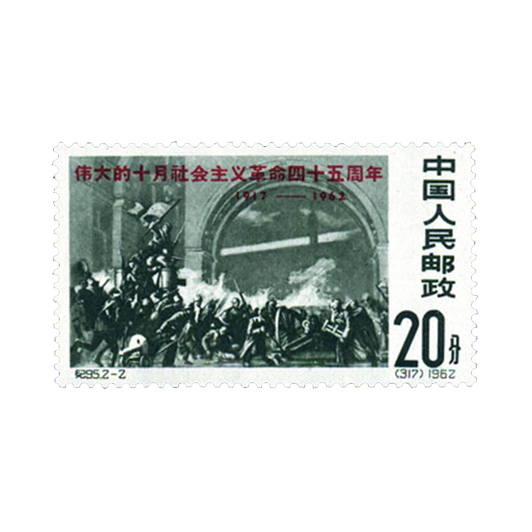 值此伟大的十月社会主义革命四十五周年(前苏联)之际,1962年11月7日邮电部发行这套《伟大的十月社会主义革命四十五周年》邮票,以示纪念,1套2枚。