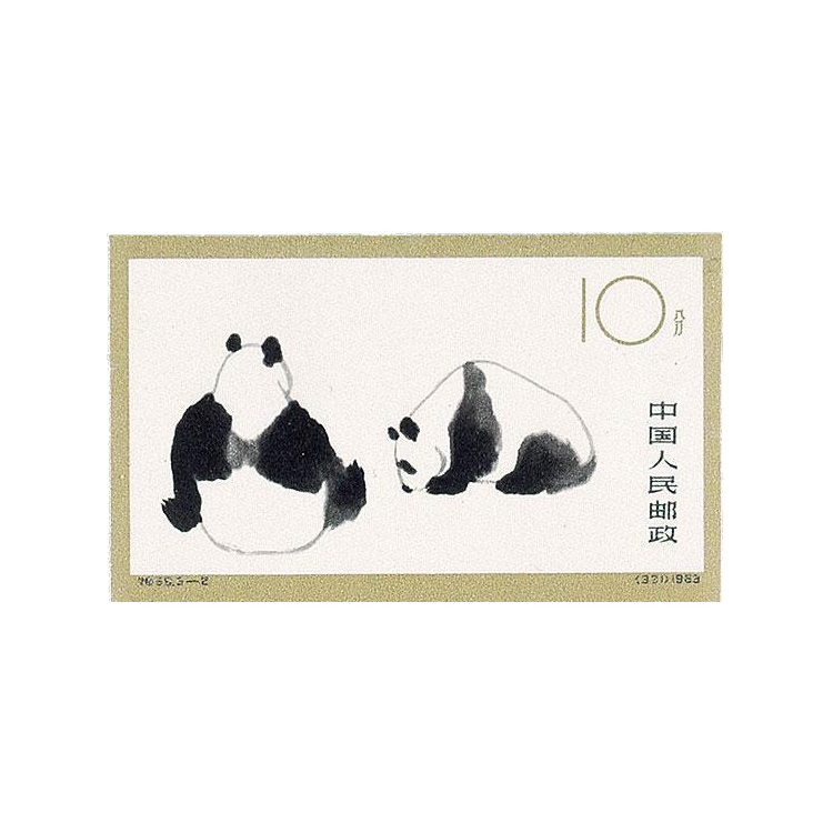 邮票3枚图案采用了中国著名画家吴作人的水墨熊猫图。画家采用大写意手法,四只熊猫姿态各异,画面突出熊猫的头部,特别是耳朵和两脚,寥寥数笔,生动地勾勒出了熊猫立、坐、躺的形态和吃、玩时的有趣神情,将熊猫憨厚、潇洒、活泼可爱的形象和性格表现得十分成功。尤其是画家恰到好处地利用宣纸渗化的特点,运用饱蘸浓墨的笔,酣畅地表现出了熊猫那一身绒毛的质感,使熊猫充满活力,甚为可爱。图案边饰颇似镜框的边缘,淡雅,朴实,和画面的色彩谐调,增添了视觉效果。