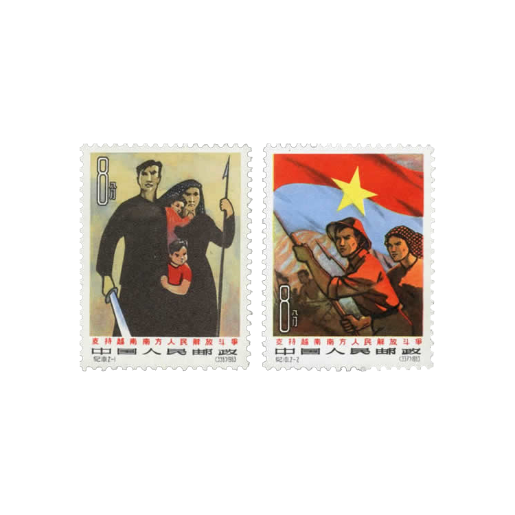 1963年12月20日邮电部为了表达中国人民对越南人民爱国正义战争全力支持的激情发行了这套邮票,全套2枚。