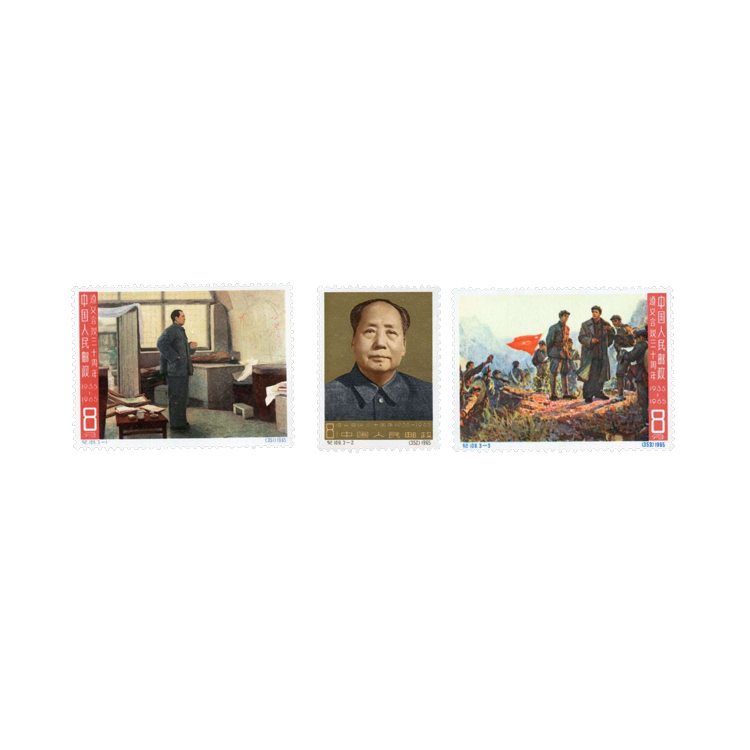 邮电部于1965年1月31日发行《遵义会议三十周年》邮票,一套3枚。