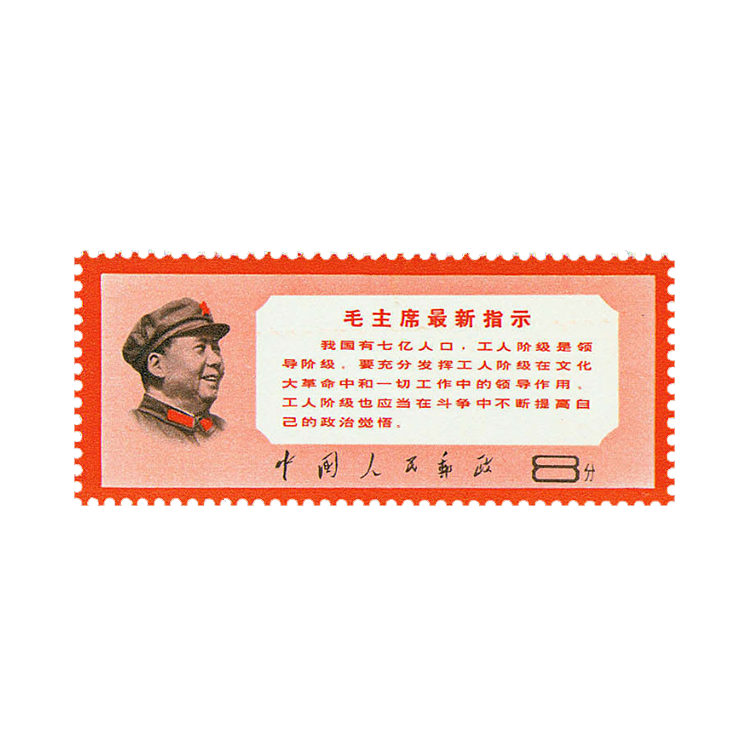 邮票画面内容的主体是毛泽东于1968年8月初发出的一段最新指示。具体内容是“我国有七亿人口,工人阶级是领导阶级。要充分发挥工人阶级在文化大革命中和一切工作中的领导作用。工人阶级也应当在斗争中不断提高自己的政治觉悟”。到1968年8月,“文化大革命”中大规模社会运动已基本过去。按照毛泽东的部署,主要任务转入“斗、批、改”的第三阶段,重点转入上层建筑部门,运动的主体力量也由青年学生转为工人阶级。由工人组成的“毛泽东思想宣传队”纷纷进驻学校和文化机关,发挥领导作用