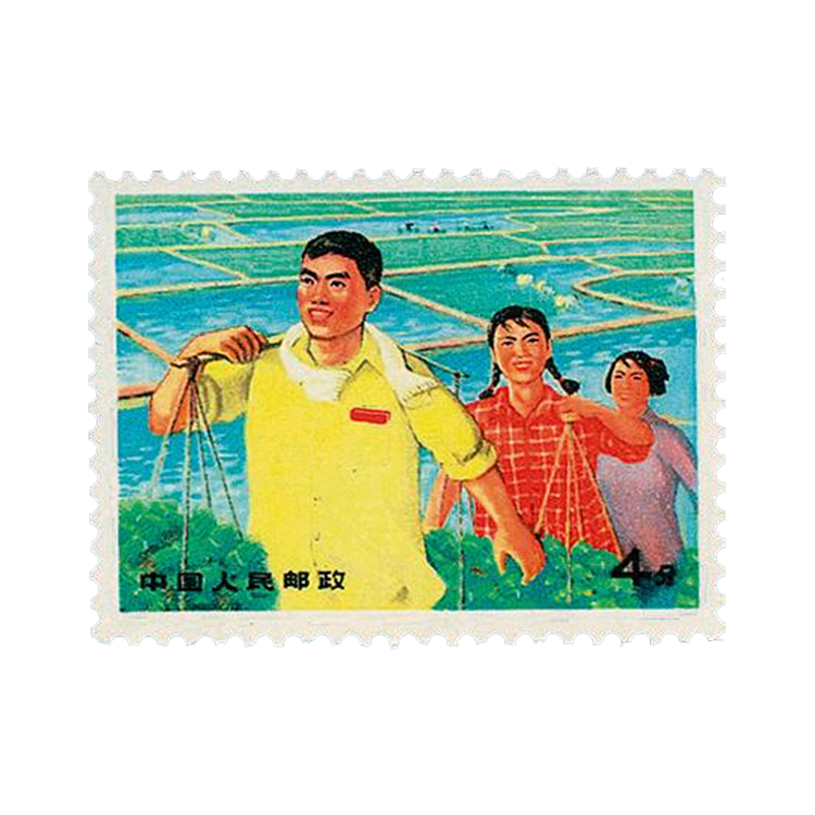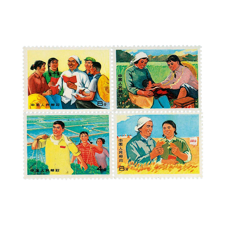 1969年10月1日发行,属于中国比较早的邮票,分为4枚,描绘了4幅各位青年在学习发展的图片