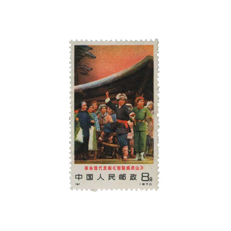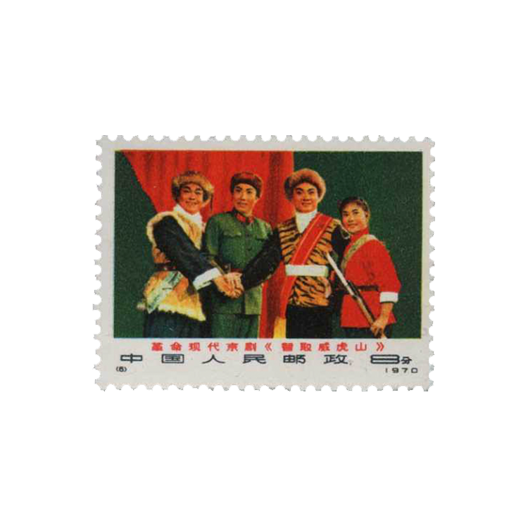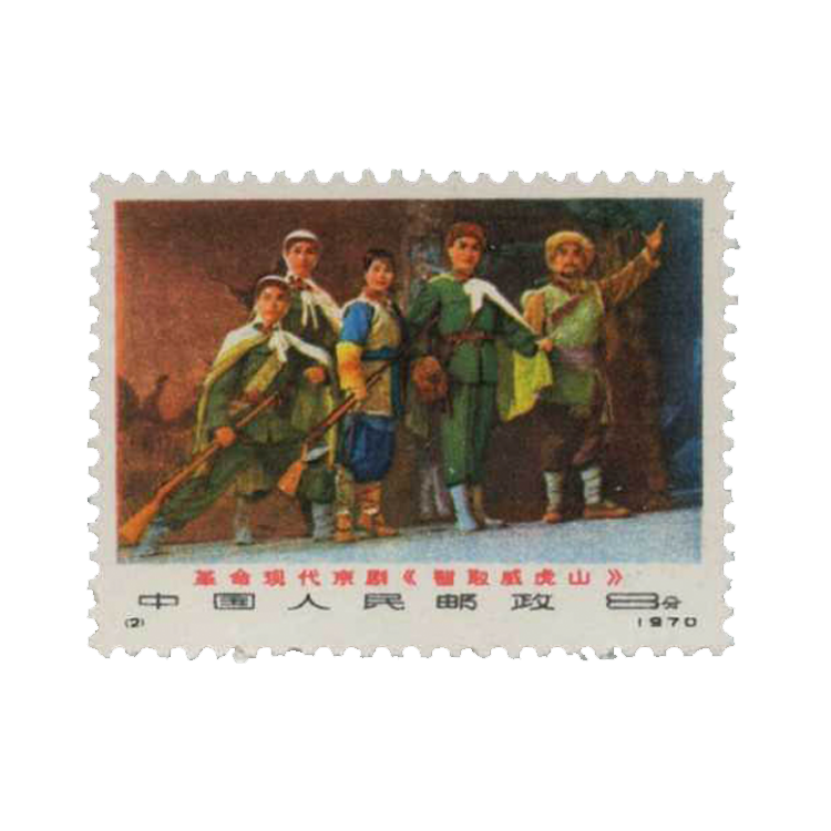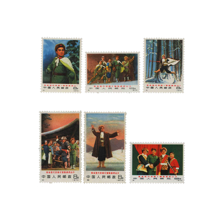 1970年8月1日,正值中国人民解放军成立43周年,中国邮政总局为庆祝这一节日,结合《智取威虎山》饱满的人物形象及人物事迹,特设计发行了这一套邮票,总共6张邮票,分别发行了3000万枚。