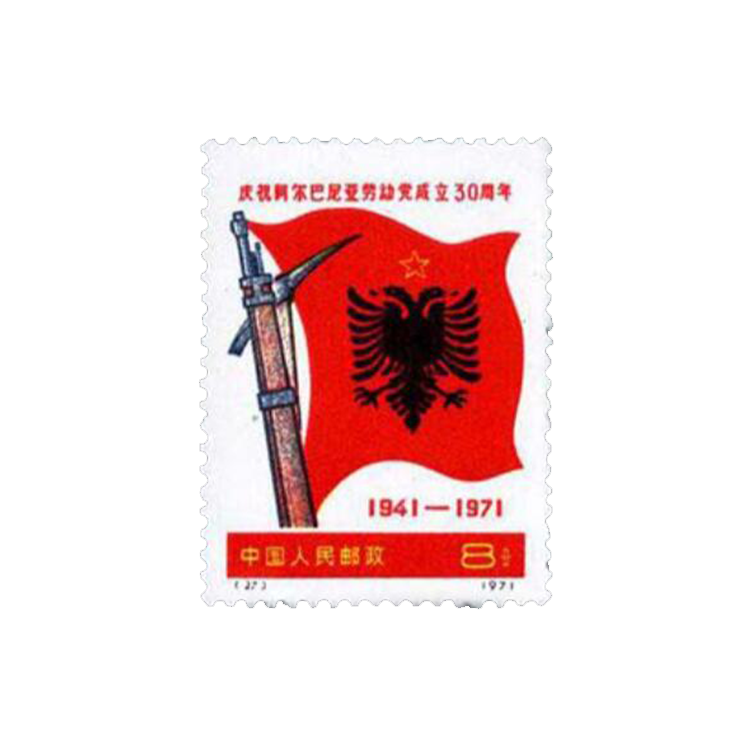 1971年11月8日,为庆祝阿尔巴尼亚劳动党成立30周年,交通部邮政总局发行了《庆祝阿尔巴尼亚劳动党成立三十周年》邮票,全套4枚。