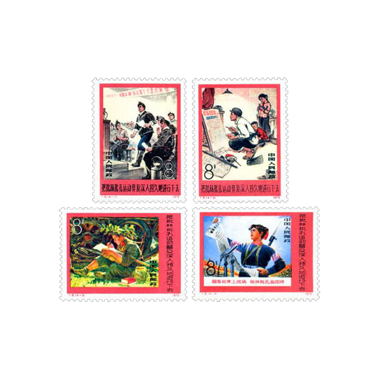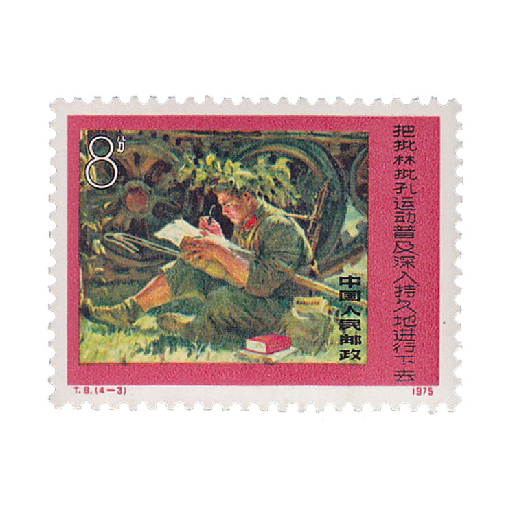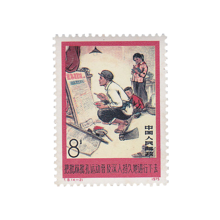 1975年8月20日,为配合“批林批孔”运动,邮电部发行了《把批林批孔运动普及深入持久地进行下去》特种邮票,全套4枚。