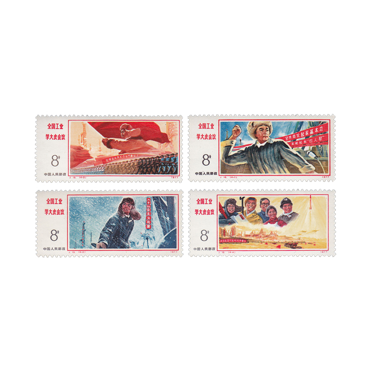 1977年4月25日,为庆祝全国工业学大庆会议召开,邮电部发行了《全国工业学大庆会议》纪念邮票,全套4枚。