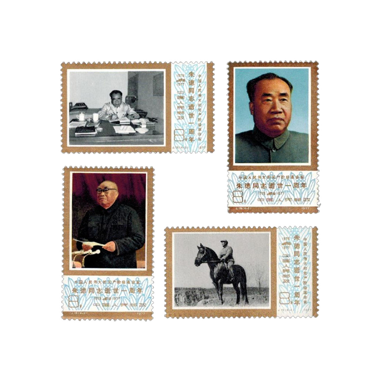 1977年7月6日,为了表达全国各族人民对朱德的怀念之情,邮电部发行了《中国人民伟大的无产阶级革命家朱德同志逝世一周年》纪念邮票,全套4枚。