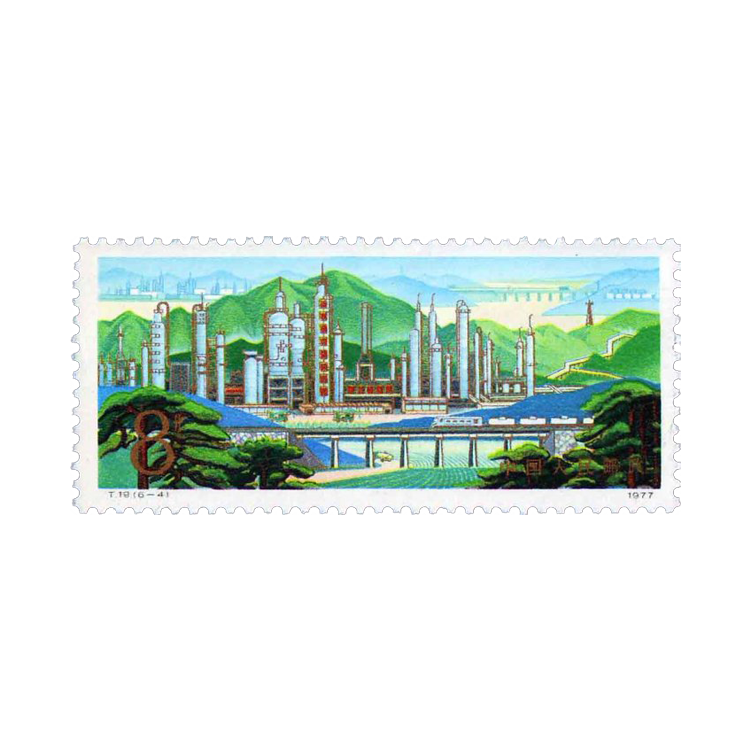 解放后的中国石油工业,经历了最早的甘肃玉门油田,再到克拉玛依油田,有力的支援了建国初期的经济建设,在能源发面给中国的工业提供了强大的保障。一直到发现大庆油田,原油的产量得到了大大的改善,每年急剧的增长也改变了中国原油基础落后的面貌。在大庆石油会战取得全面胜利以后,石油堪探队伍进入了我国勃海湾地区,在1965年成功探明了胜利油田,为中国石油工业的发展又迈进了一大步。 1976年,大庆油田的年产量突破了5000万吨,为全国石油年产量上1亿的目标打下了坚实的基础。为了发挥中央和两个积极性,以中国当时的石油部为主,又陆续新建了十多个大中型的炼油厂,以提高生产指标。自70年代以来,我国石油工业生产发展迅速。为了庆祝和纪念我国石油工业的高速发展,中国邮政于 1978年1月31日发行了发展中的石油工业这套邮票,以庆祝石油工业发展的蒸蒸日上。这套邮票清晰地反映了中国石油工业从用进口洋油到自给自足,再到不断走向成熟化的发展过程。