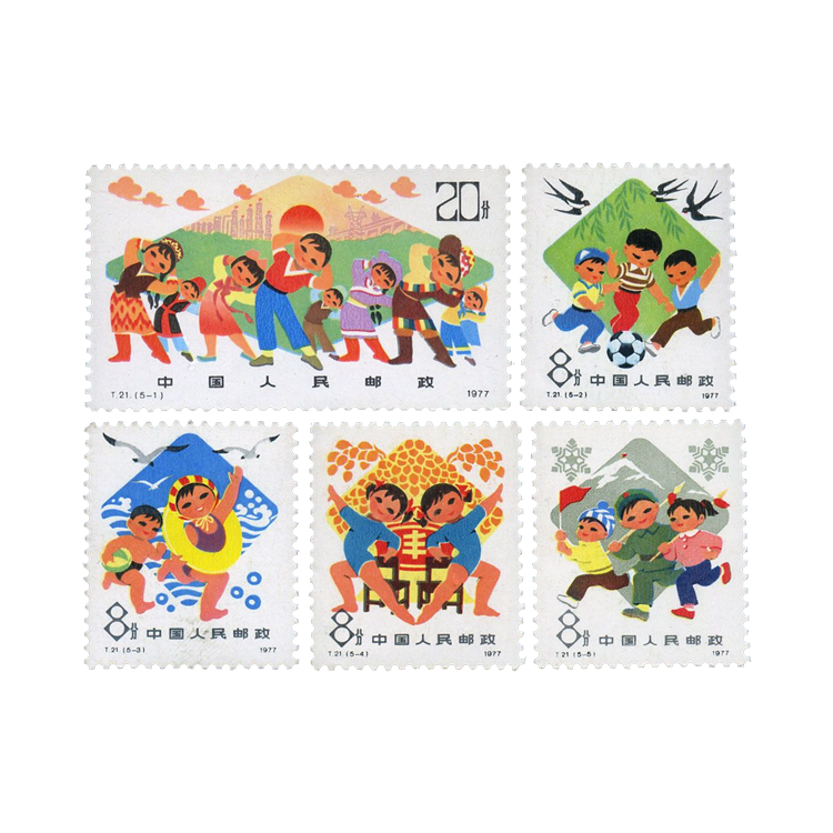 这是为庆祝 “六一”国际儿童节而于1978年6月1日发行的,中华人民共和国成立后,毛泽东发出号召“发展体育运动,增强人民体质”,本套由票展示了中国少年儿童积极参加体育锻炼的生动场面。