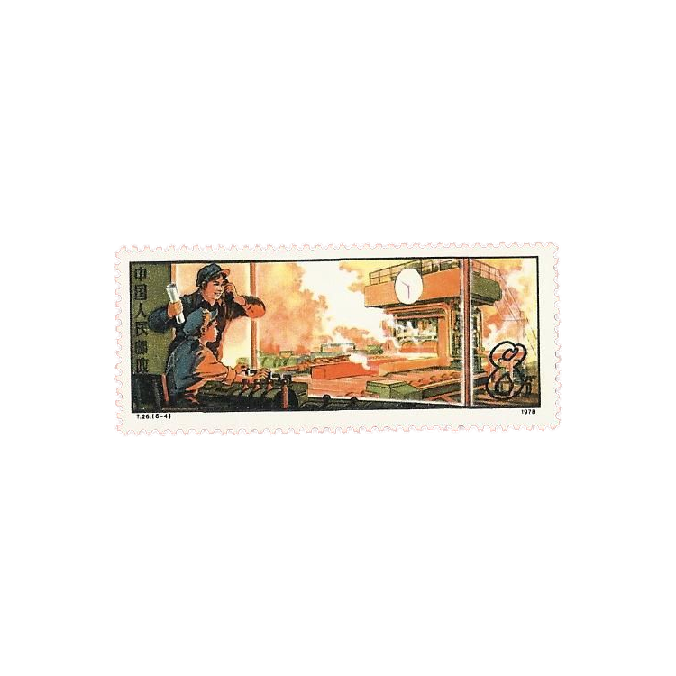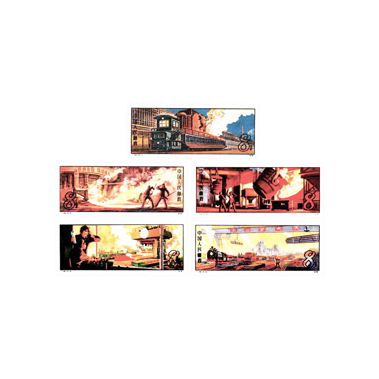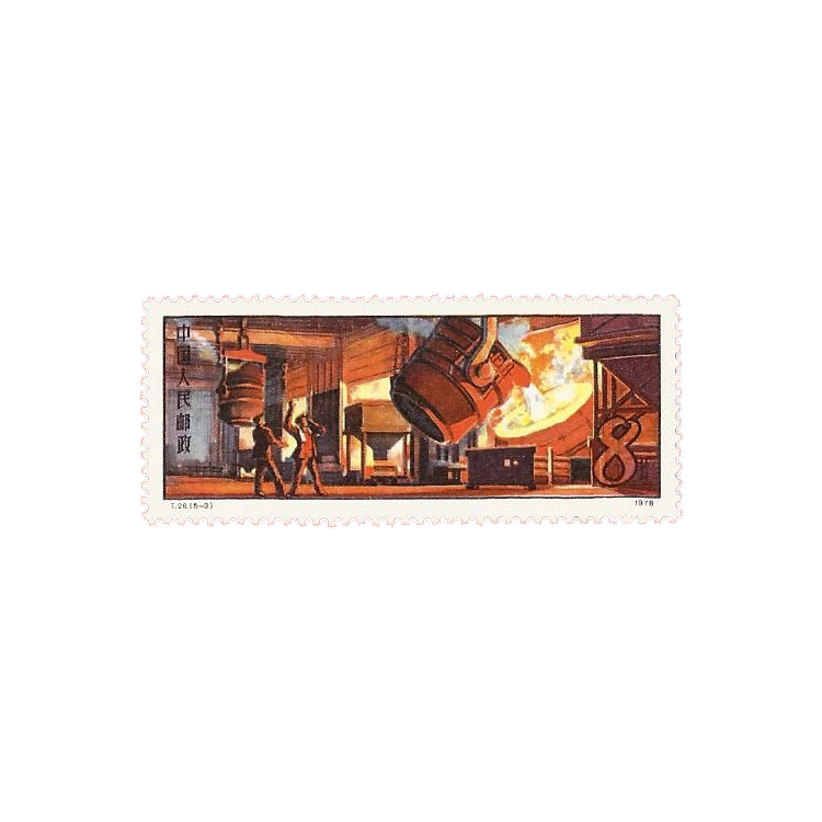 钢铁工业属黑色冶金工业。在国民经济中占有极重要的地位。我国治铁技术发展很早,从战国到东汉初年,即公元前4世纪到纪元开始,我国铁器的使用已开始普遍起来。解放后,在国民经济恢复时期,国家便组织人里,迅速恢夏了鞍钢等大型钢铁企业的生产,1952年我国的产里已经超过我国历史的最高水平,在世界排名18位,1957年跃升至第9位。60、70年代以后,我国一大批钢铁联合企业相继诞生。使我国的那将铁生产水平不断提高,新产品不断涌现,不少产品填补了我国钢铁生产的空白,其中一些已达到或超过世界先进水平,为我国四化建设提供各种钢铁产品,推动了整个国民经济的发展和进步。这套特种邮票,反映了钢铁生产的五个重要环节。
