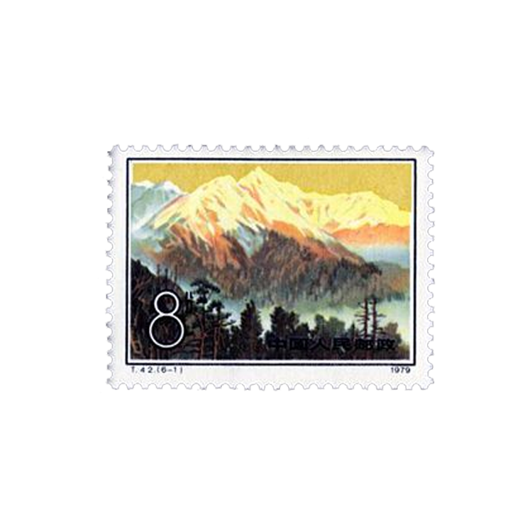 (6-1)图案生动地描绘了台湾玉山积雪的奇观景象。玉山位于台湾省中部嘉义、南投、高雄三县交界处,绵亘280公里,主峰海拔3950米(一作3997米),是中国东部最高峰。