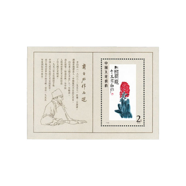 齐白石,我国著名国画家。作为我国现代最为杰出的艺术家之一一。齐白石老人早已享誉全世界,在国内更是家喻户晓,倍受崇敬。1953年在他93岁生日时,中央文化部特授予“人民艺术家”的荣誉奖状1955年又荣获国际和平奖金。白石老人虽早在1957年便已乘鹤仙去,但其艺术成就和勤奋精神在我们面前。这套邮票计16枚邮票和1枚小型张,图案均选自老人晚年的代表作。