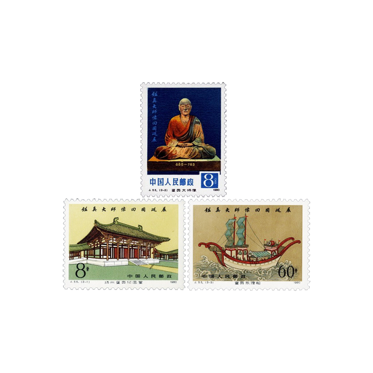 1980年,日本佛教界友好人士将供奉于奈良市唐招寺的鉴真大师像运回中国巡展。为了庆祝这一友好行动,中国邮电部于1980年4月13日发行了这套《鉴真大师像回国巡展》邮票。