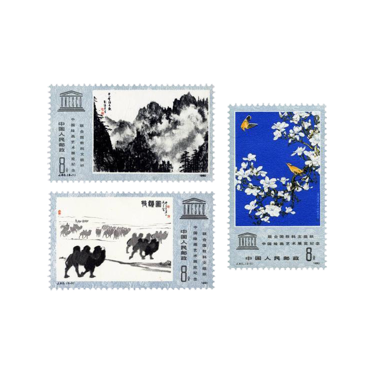 邮电部应联合国教科文组织的要求,1980年10月8日,发行了《联合国教科文组织中国绘画艺术展览纪念》纪念邮票,全套3枚。