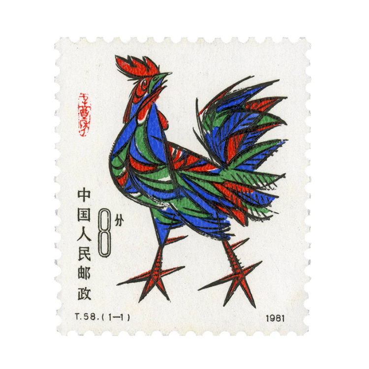 邮票的特约设计者是我国当代著名画家张仃先生。1981年设计“辛酉年”生肖邮票时,有关人士首先就想到张仃先生并向他约公鸡画稿。张仃先生绘有无数的鸡画,任意挑选一张皆可成为邮票画面。然而,这一次却没让人挑选,而是自己取出一张皱巴巴的旧画作为邮票的主图。人们都百思不解,最后还是张仃自己透露了其中奥秘,原来这是一张失而复得、值得纪念的画作,是一张深深打上了一段浩劫灾难印迹的、非同寻常的画作。