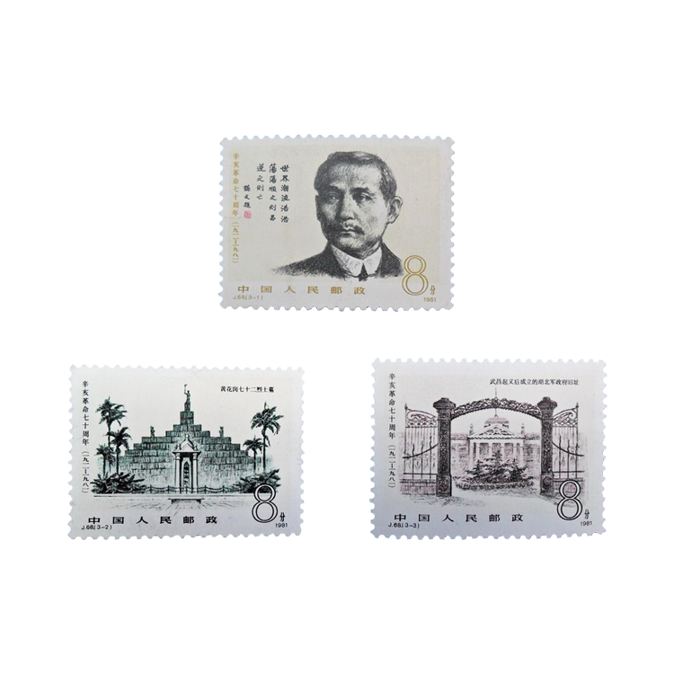 邮电部为纪念辛亥革命七十周年在1981年10月10日而发行,全套共3枚。