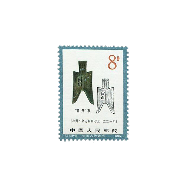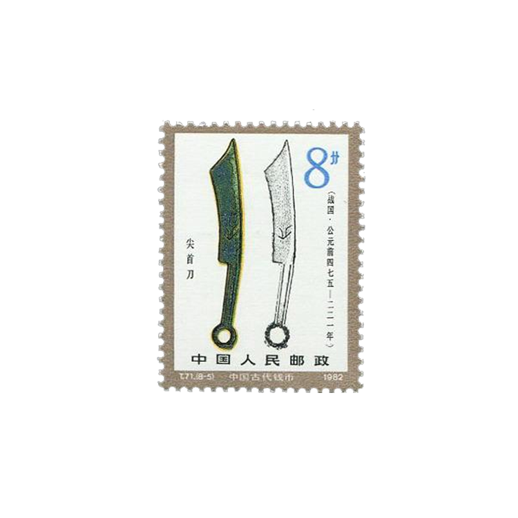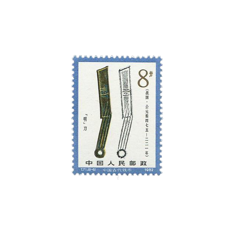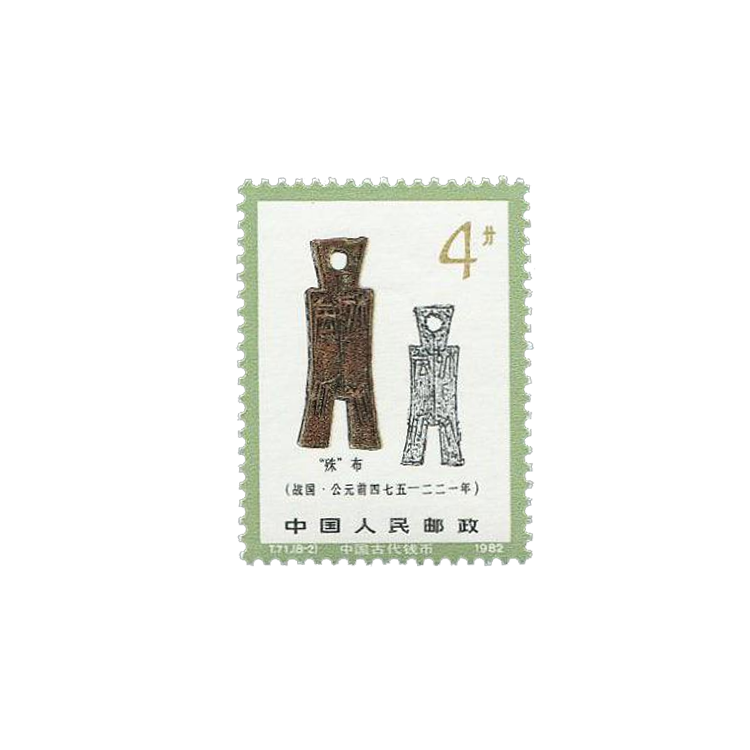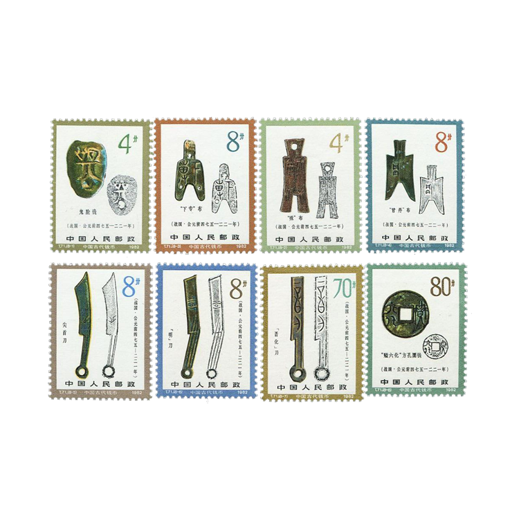 1982年2月12日发行了“中国古代钱币”特种邮票(第二组),选取的是战国时期的八种金属货币。
