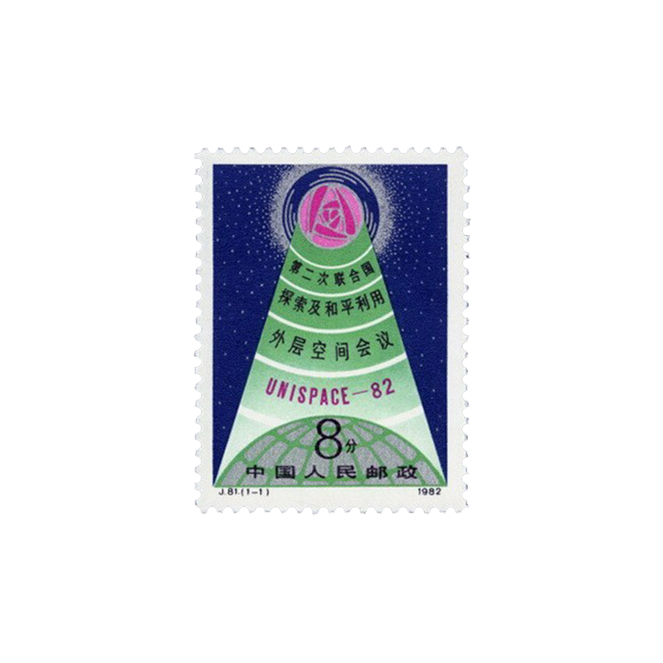 1982年7月25日,为宣传第二次联合国探索及和平利用外层空间会议的重要意义,邮电部发行了《第二次联合国探索及和平利用外层空间会议》纪念邮票,全套1枚。