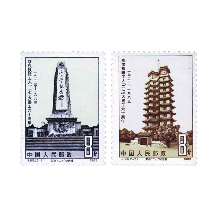 1983年2月7日,正值“二七”惨案60周年纪念日,为了表现人们的对先烈的哀思和怀念,邮电部发行了《京汉铁路工人'二七'大罢工六十周年》纪念邮票,全套2枚。
