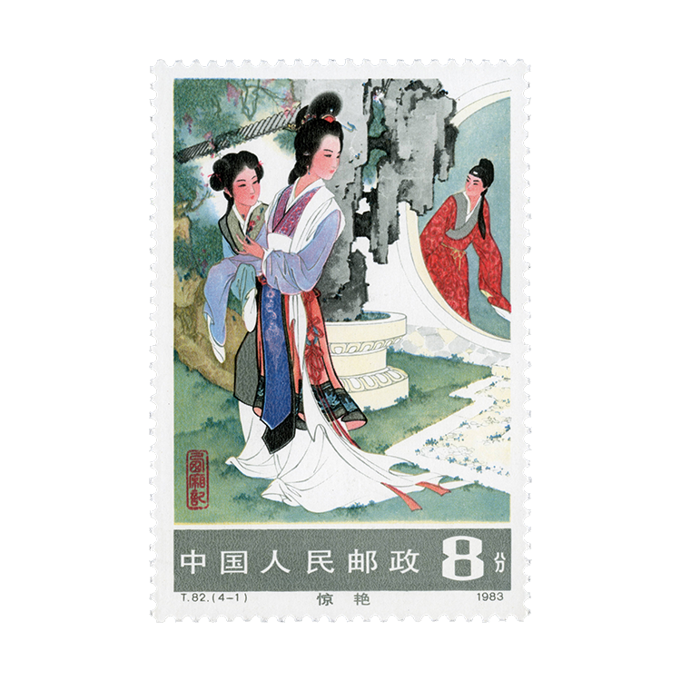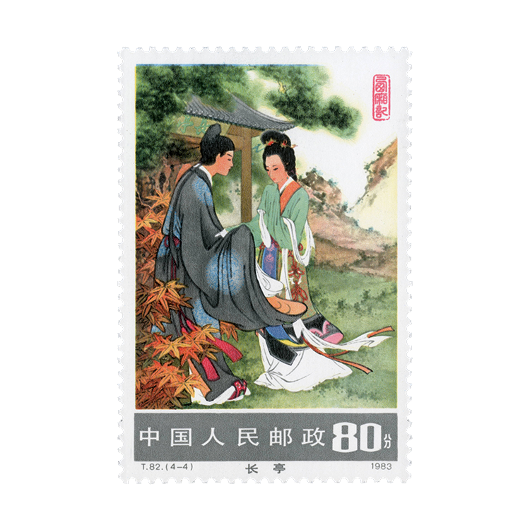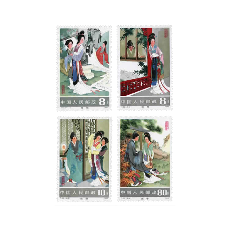 中华人民共和国邮电部发行一套T82《西厢记》特种邮票,全套4枚,同时发行1枚小型张。