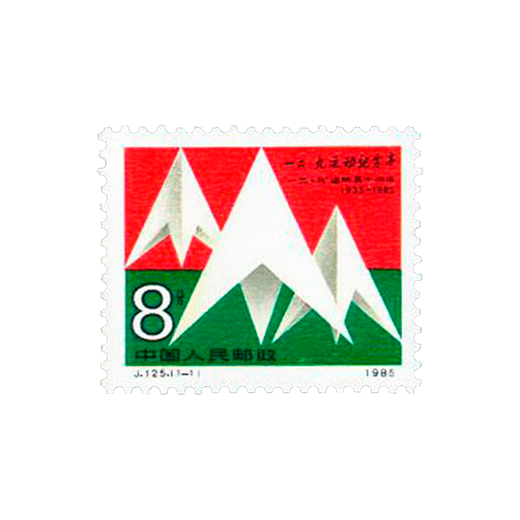 1985年12月9日是“一二·九”运动的五十周年纪念日,邮电部发行“一二·九运动五十周年”邮票,编号J125,全套1枚。
