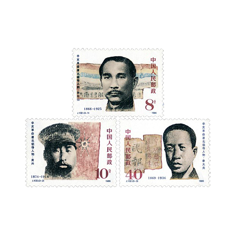 1986年10月10日,为纪念辛亥革命著名领导人物发行该套邮票,全套共3枚。