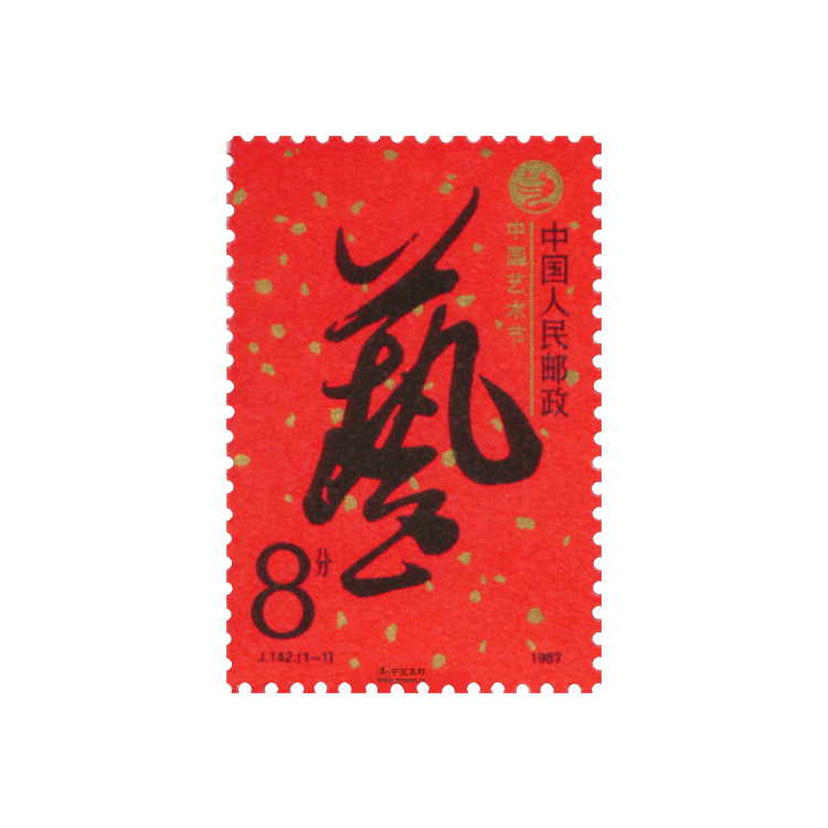 邮票的主体形象 选用中国北宋著名书画家米芾的行书“艺”字,使介于具象和抽象之间的汉字特色在这里得到恰到好处的发挥。