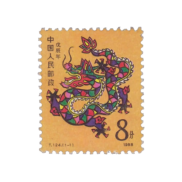 1988年1月5日,邮电部发行了十二生肖系列邮票中的“戊辰年”生肖邮票,这套邮票的设计者是当时年仅24岁的女大学生祖天丽,她在离龙年生肖邮票图稿评审还有两天的时候才收到邮票发行局的邀请参加应征,于是她神速地创作了两幅送审,未曾料到竟然脱颖而出。但是她后来在按评委意见修改画稿时,真感到邮票设计是越画越难。因为龙头、龙须的一点变动就会使龙变老,龙眼的细微变化则会使龙显得凶狠,而龙身瘦一点就会像蛇,终于在修改了7、8稿后精益求精的“龙”票才终于成型。邮票中这条龙不以雄姿惊人,不以威猛慑人,而以亲切、活泼取胜,设计者综合了木版年画、剪纸、刺绣等几种民间艺术的特长,使笔下的龙色彩绚丽,雅致可爱。