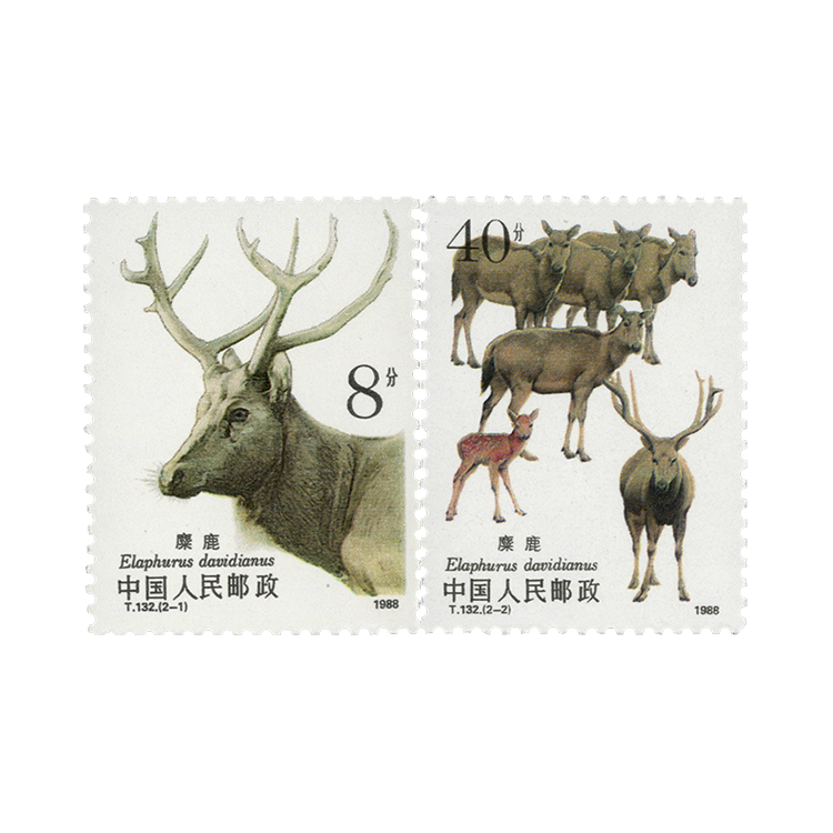 1988年12月20日,为提高全社会保护珍稀动物的意识,邮电部发行了《麋鹿》特种邮票,全套2枚。