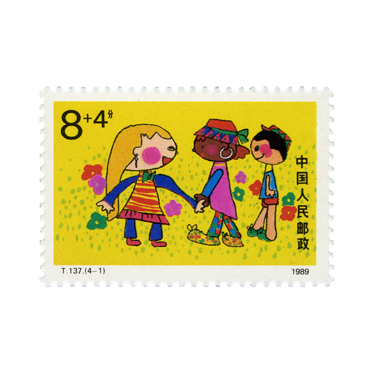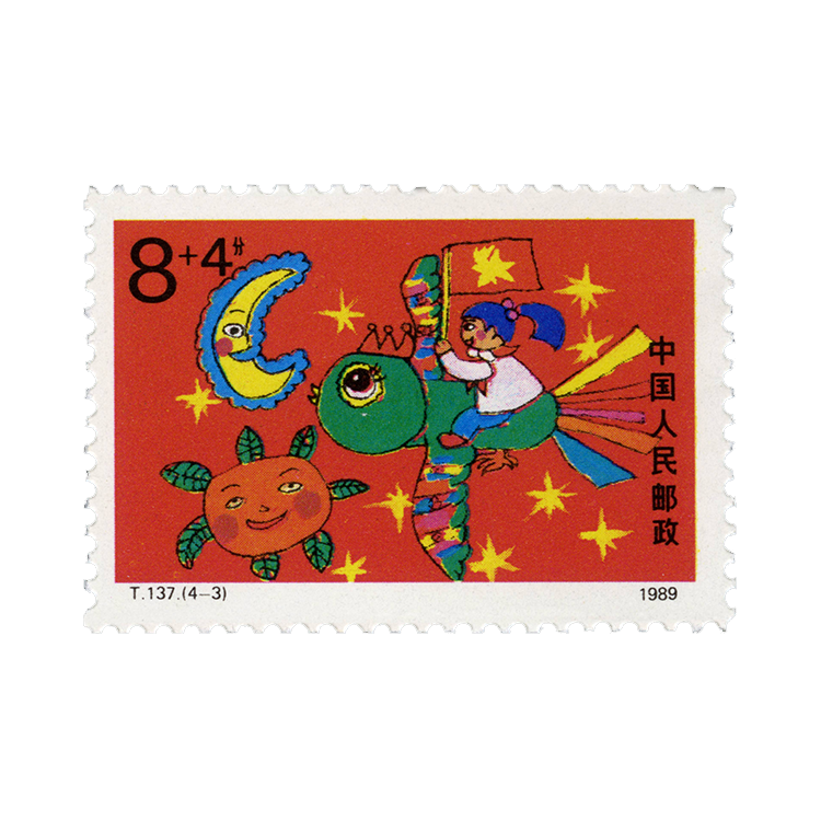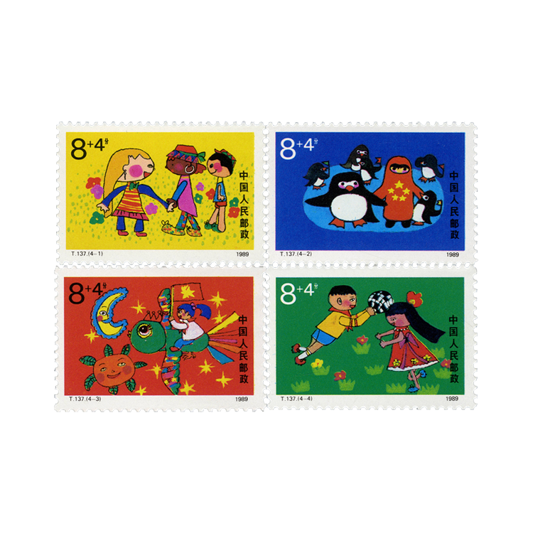 1989年6月1日,是国际儿童节40周年纪念日,邮电部特发行这套附捐邮票,以资纪念。4枚邮票面值均为8+4分,其中8分是邮资,4分是为中国儿童和少年基金会募捐。这是我国发行的第二套儿童附捐邮票,也是第三套儿童画邮票。这套邮票由中国儿童少年活动中心美术组设计,具有时代气息,充分表现了儿童的心态、渴求、幻想以及对未来美好生活的向往。