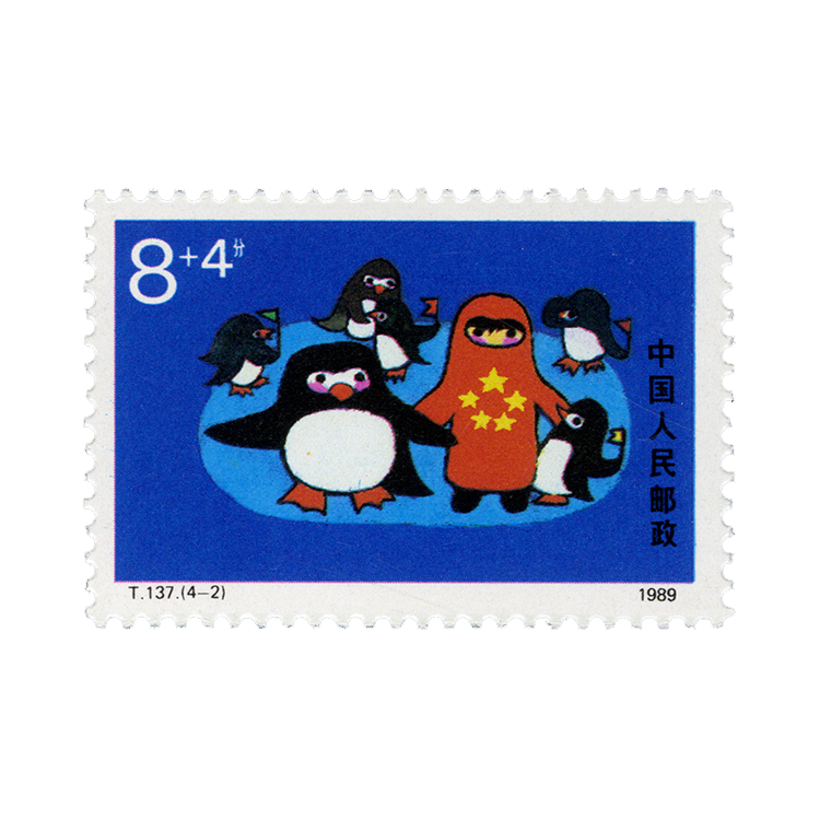 4-2为“企鹅,你好”。图案表现了少年儿童热爱科学,不怕艰难,征服大自然的精神。
